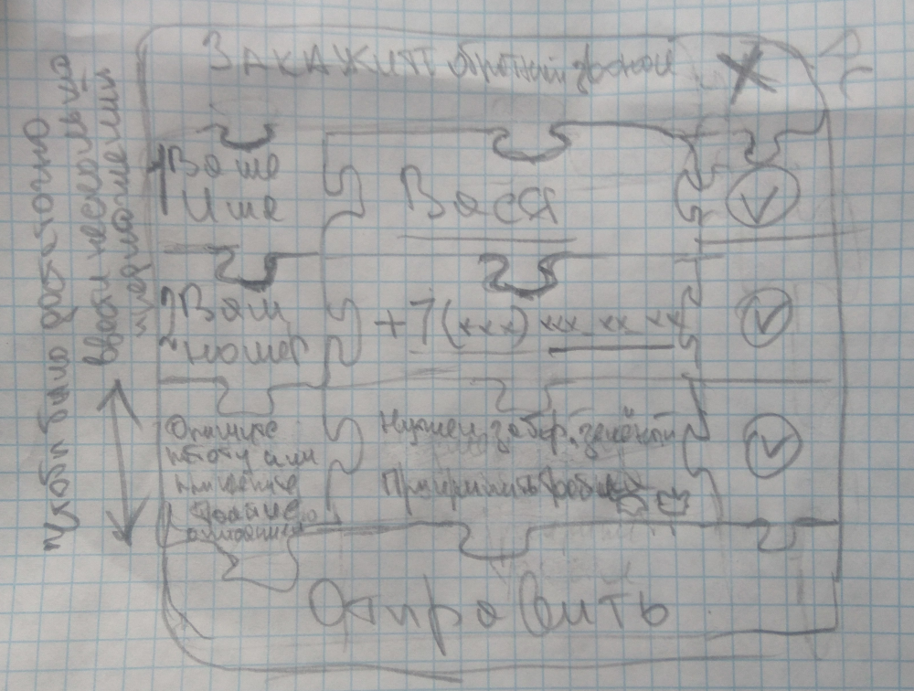 Пользователь "жмакает" по кнопке-пазлу, открывается окно оформления заказа услуги/работы.