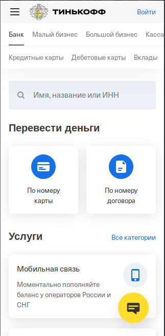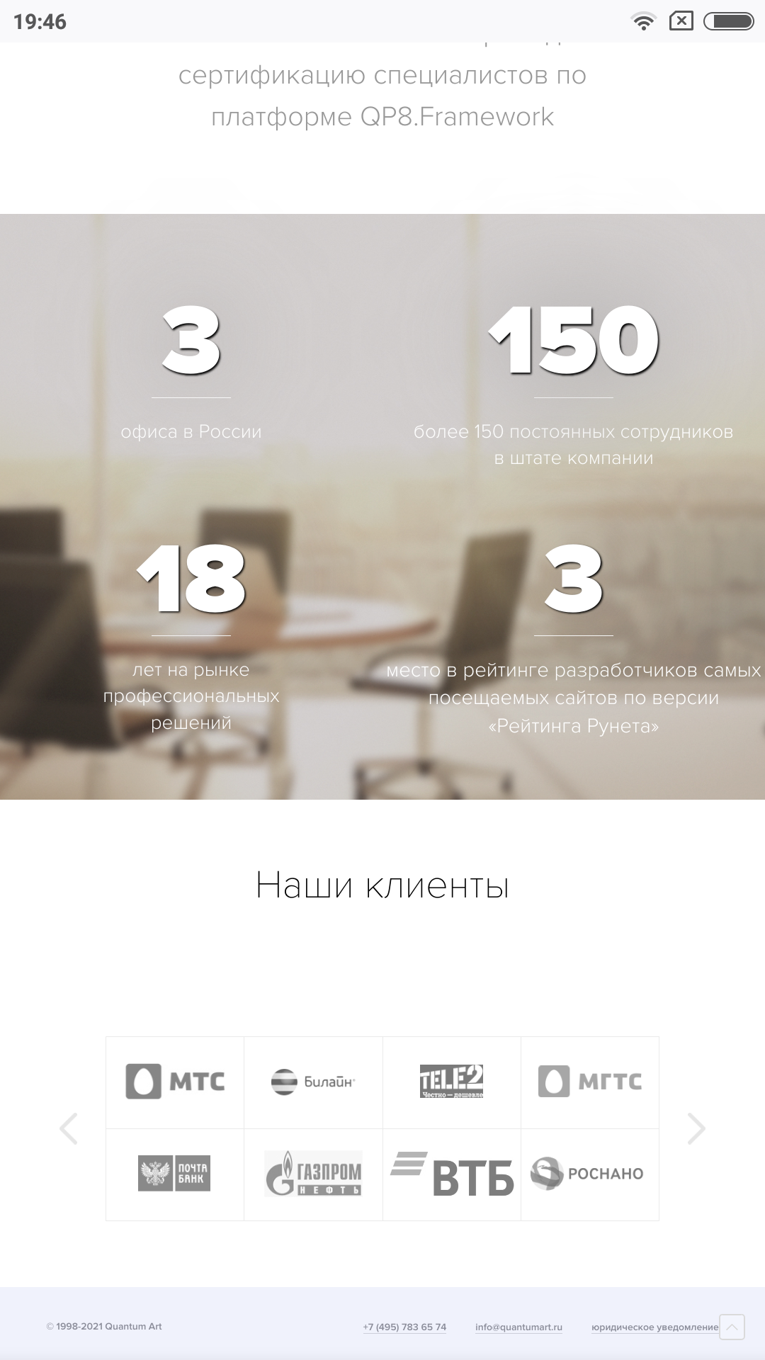 Понравился минималистический дизайн - весь sitemap из 4 ссылок - sitemap.xml, региональность сделана при помощи карт, без "каталогов", "поддоменов" т.к. у них всего 2 региона и усложнение лишнее. Но тут именно лендинг/визитка, а у нас немного другое позиционирование - это в первую очередь услуги, а о компании это где-то там внизу, в подвале. На этом все хорошее закончилось и пошли минусы - отсутствует адаптивность, отсутствует https, как результат tele2 тутже впихнул (inject java-script virus) свою рекламу http://p.tlrtb.com/ad/base.js. |