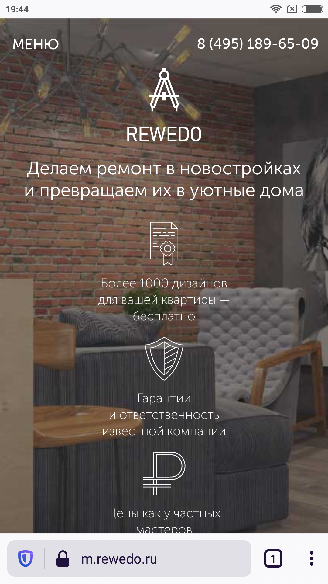 Главная довольно интересно и почти аккуратно сделана (в мобильной версии, как по мне слишком много текста, слишком длинная портянка), но это и не SPA. "Почти" - дубляж телефонов, перекрытый фон "лица" полями ввода и другие мелочи … но в целом все не плохо. Цветовая схема вполне приемлемая. Минус, что отдельная мобильная версия (отдельный поддомен m), redject на который происходит по user agent (поддомен это фактически отдельный сайт). Хостятся они кстати на Amazon при запросе sitemap.xml получаем "кривой" redirect на https://rewedo-v3-2.s3-us-west-2.amazonaws.com/sitemap.xml |