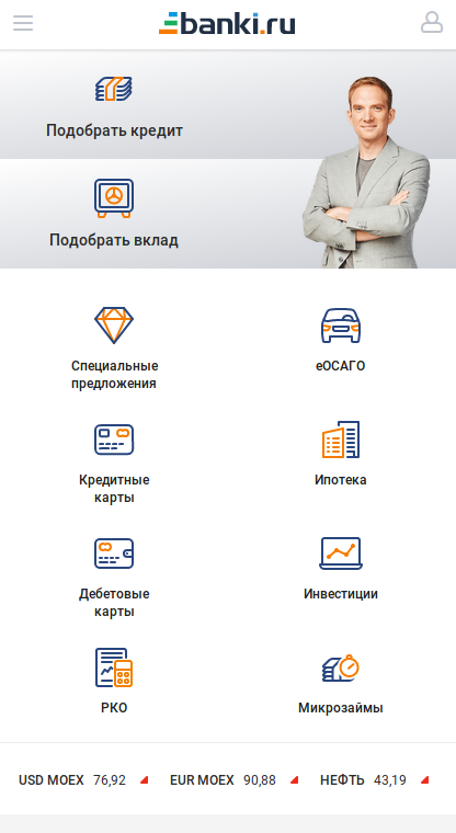 Предоставлять возможность приоритизации услуг - это требование в основном к главной (см. Examples (Примеры) пример с banki.ru);