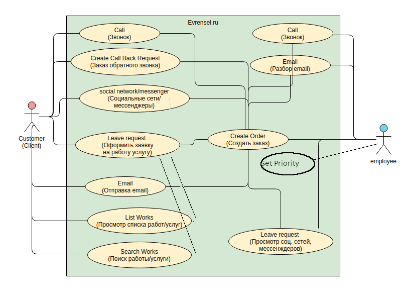 обработка/приём заказов (предоставлено чисто информационно, сотрудник никак не взаимодействует с сайтом при обработке заказа). Cотрудник получает предварительную заявку/заказ от клиента, которую клиент может оставить разными способами, через разные каналы обслуживания (звонок, на сайте через форму, Email, через мессенджер). Далее сотрудник уточняет параметры заказа, опционально предлагает услугу оценки, если цена клиента устраивает, то отправляет реквизиты для оплаты или просто договариваются с оплатой по факту выполненной работы или ещё как договорятся (все максимально гибко, может даже "бартер" быть). Весь учет заказов в Excel с хранением в облаке за исключением бухгалтерии (1С). И большего пока не нужно;